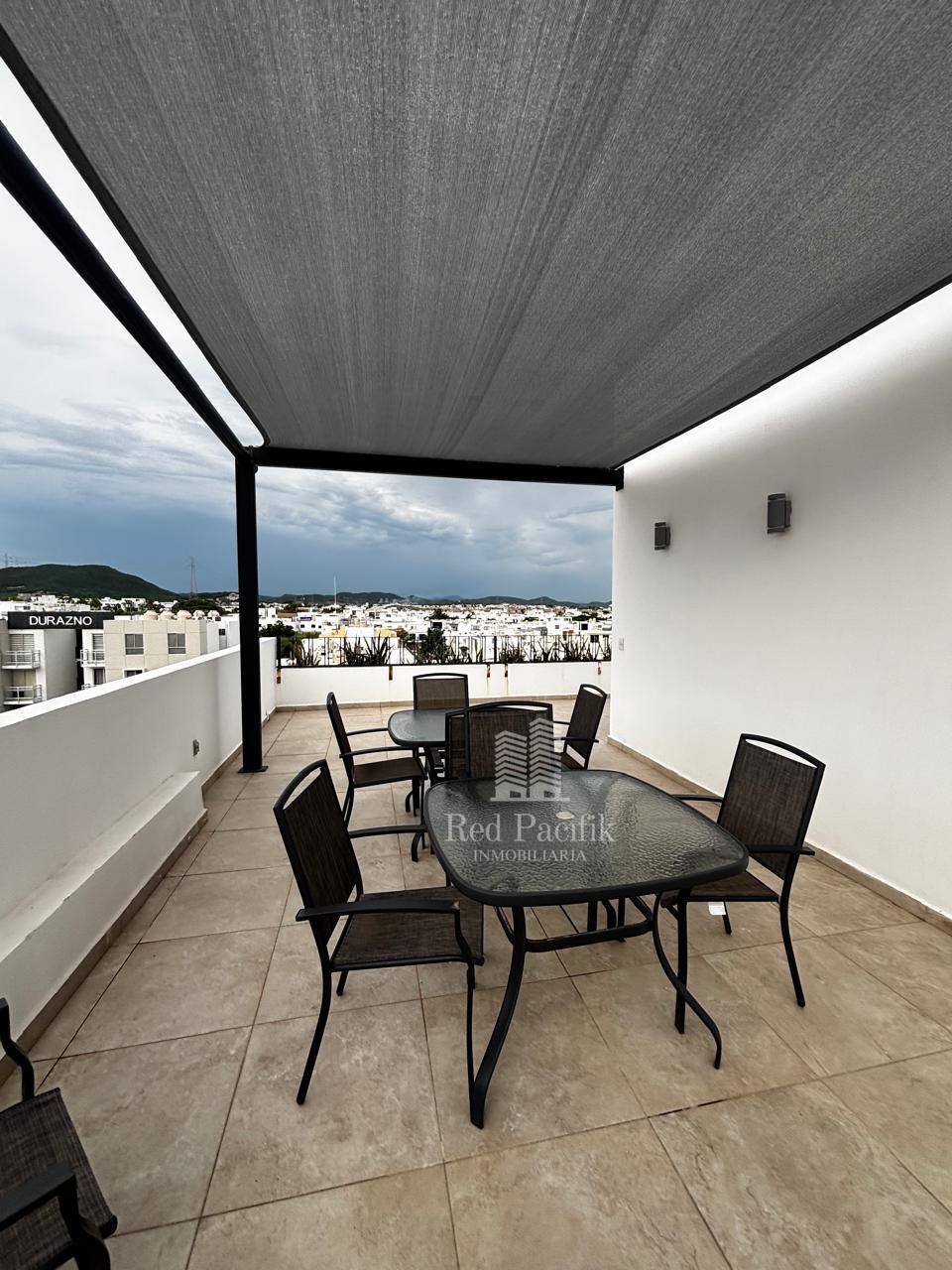 * Rooftop: Asador Weber, medio baño con espejo, área con malla sombra, sillas, mesas, barra con cubierta de cerámica, tarja, bodega de uso común y ¡una vista increíble a todo Mazatlán!